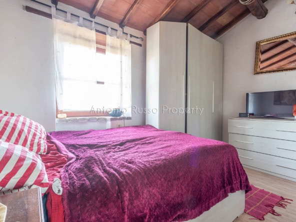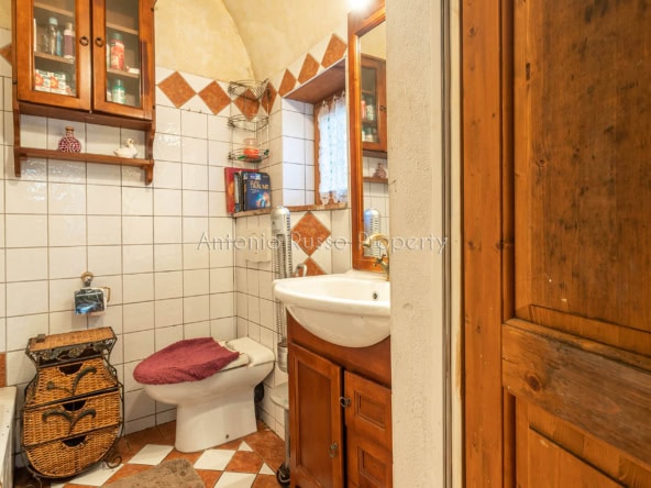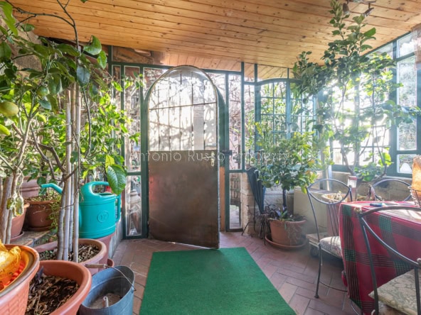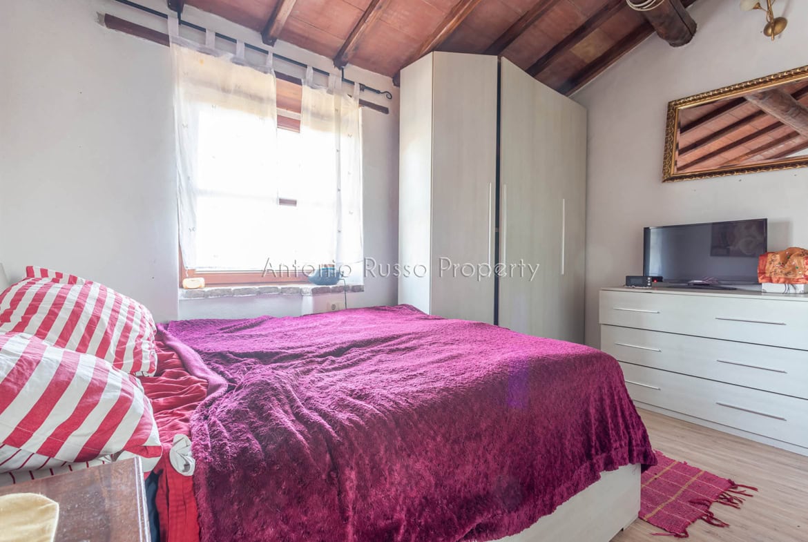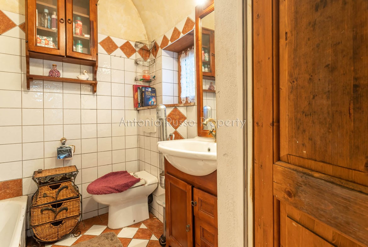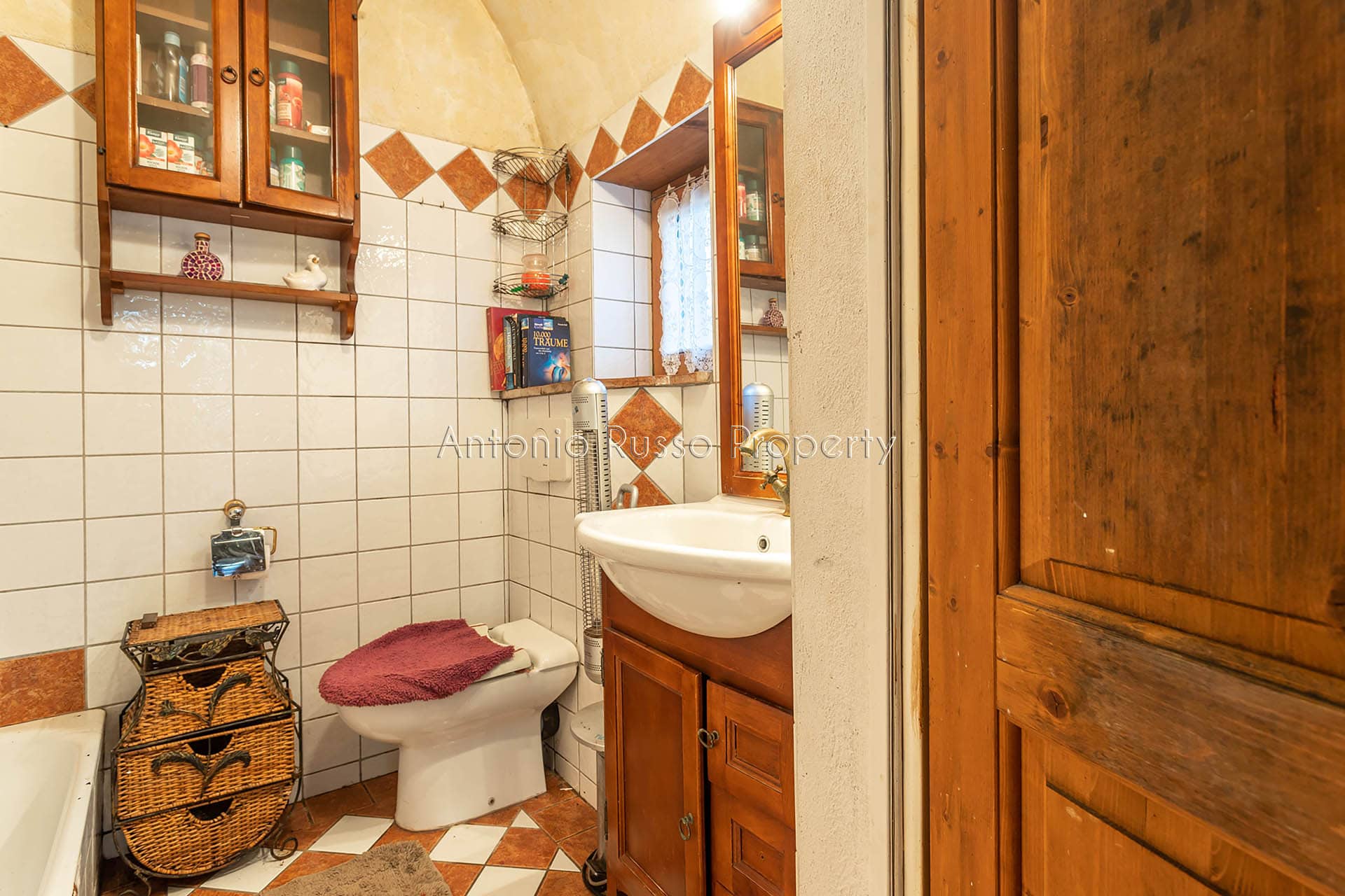 The main entrance is on the ground floor, through a bright veranda. Here we find the living area with open-plan kitchen, three rooms that can be used as bedrooms or studies, and two bathrooms. A stone staircase leads to a bedroom on the upper floor with private bathroom, perfect as a suite.