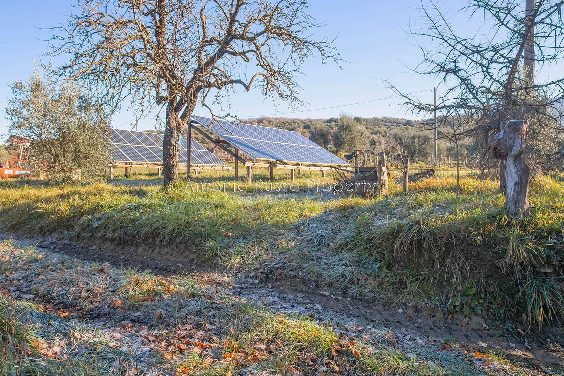 The heart of the outdoor area is the private swimming pool, located in front of the house: a natural meeting place for summer days. A shaded lounge area combines comfort and protection,ideal for relaxation and socializing. The approximately 2-hectare plot, with high-quality olive trees, enhances the "Tuscan countryside" experience and allows for light agricultural management.