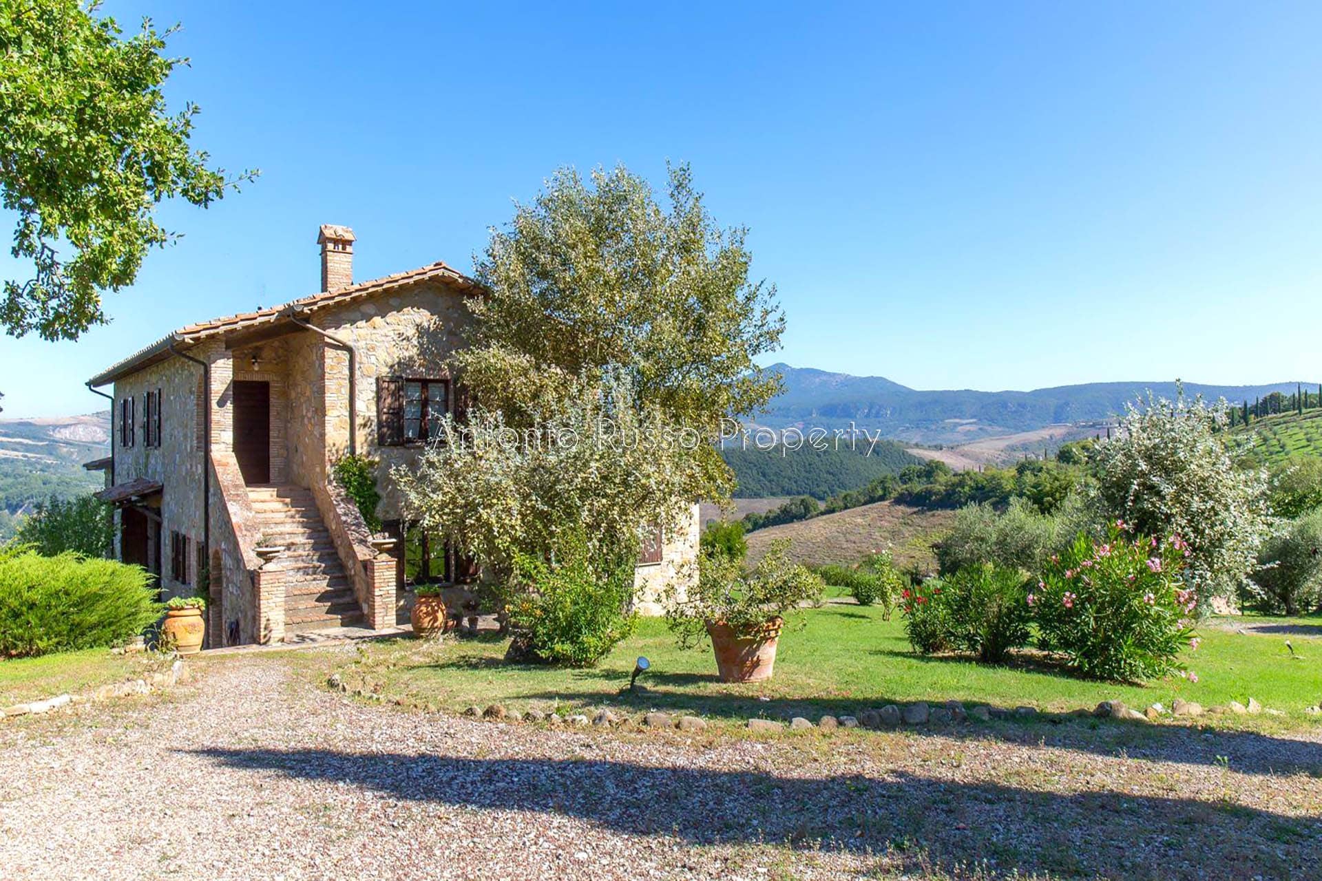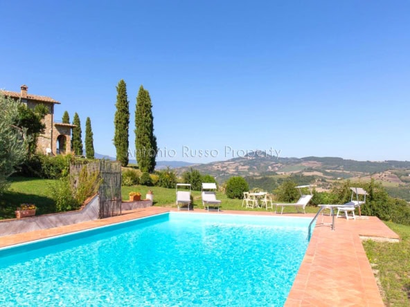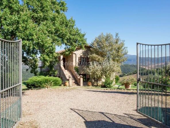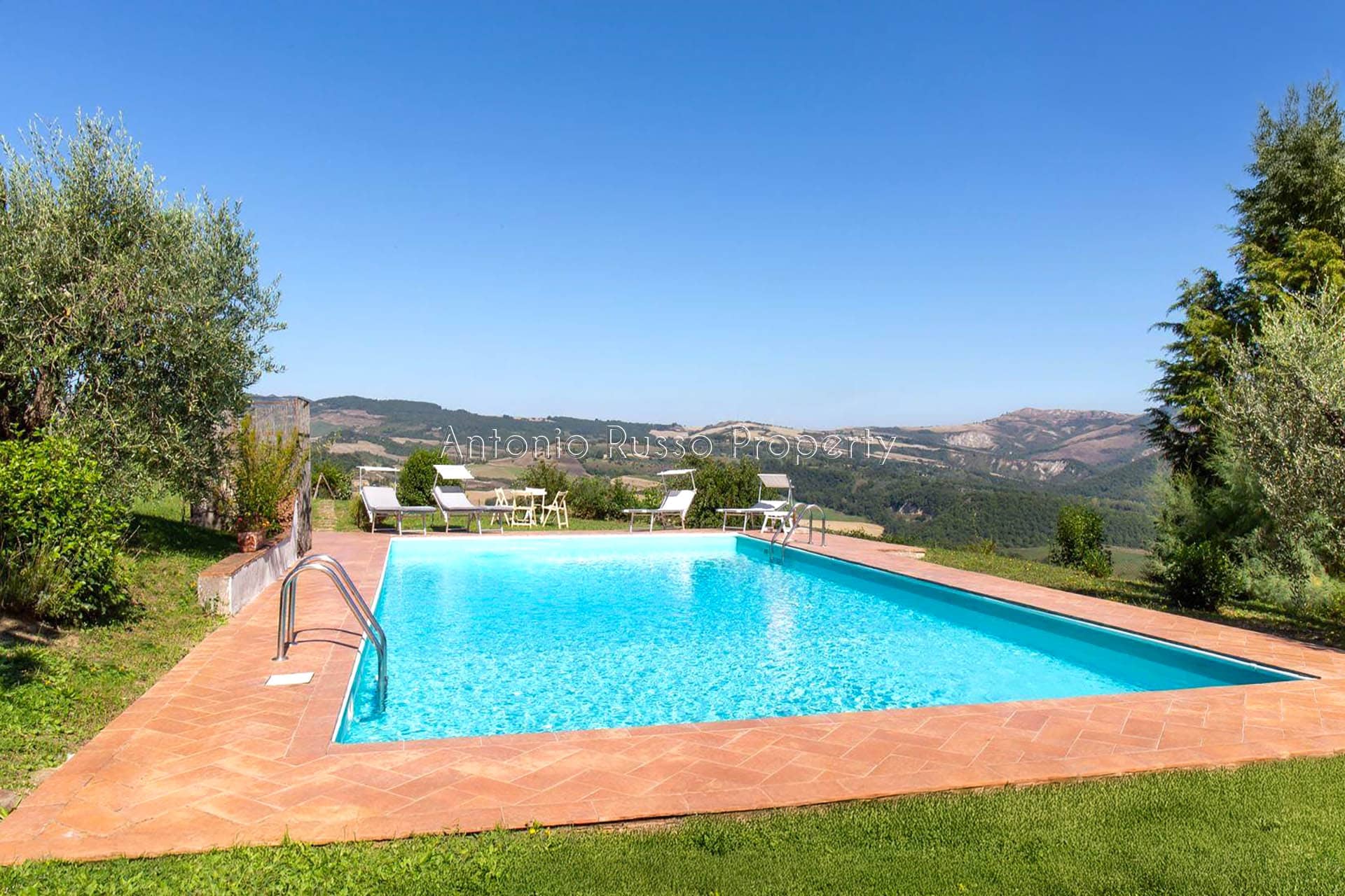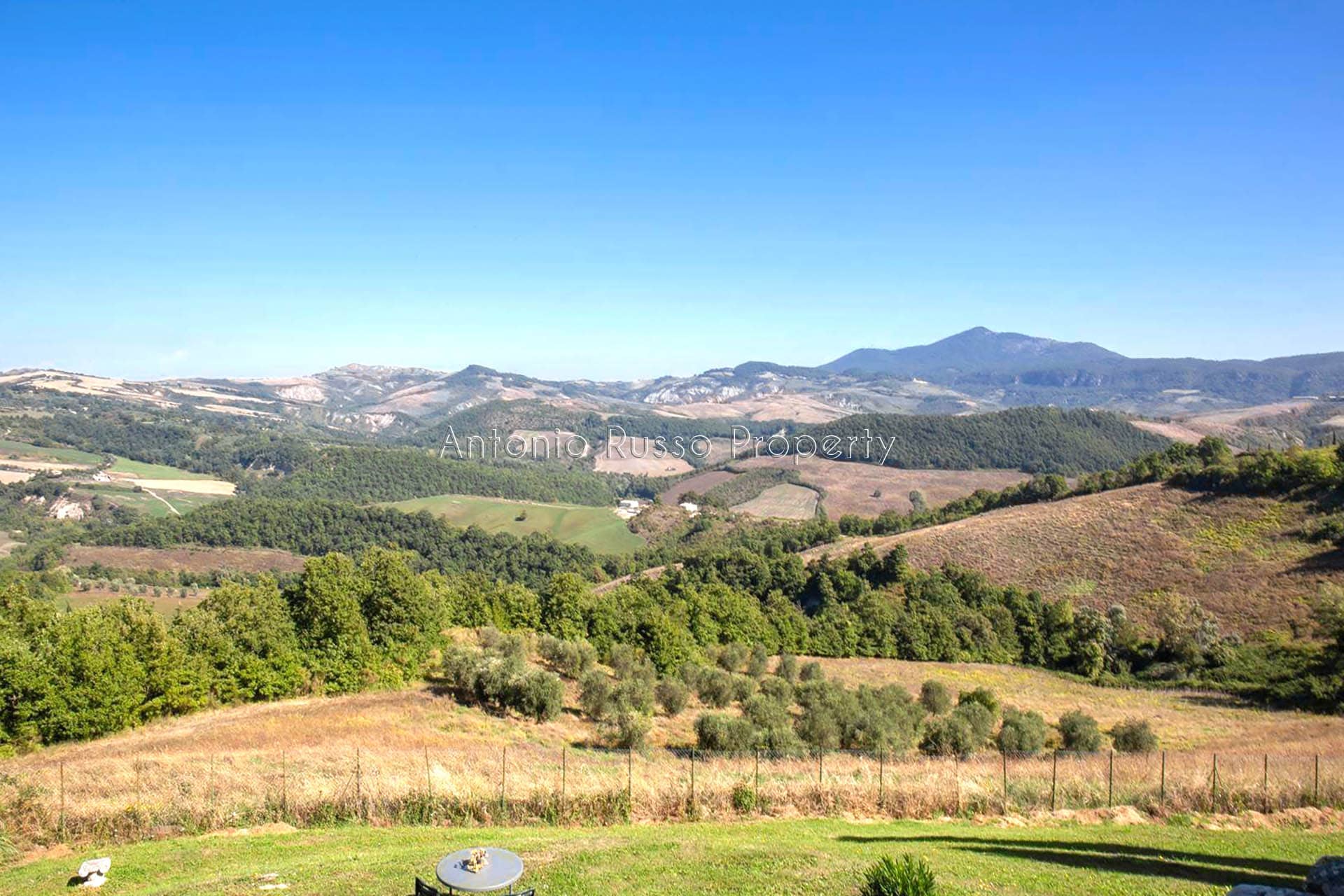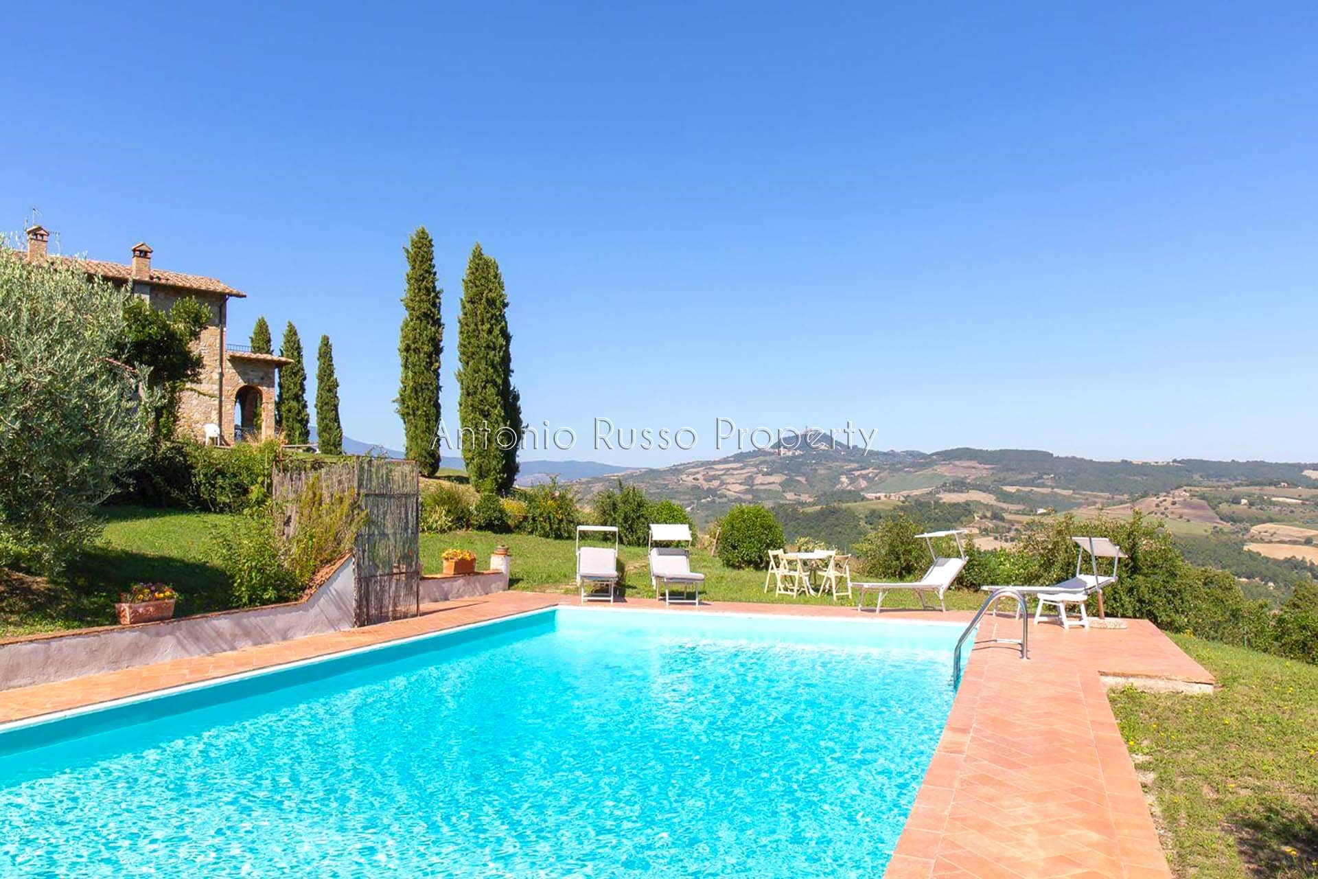 Stone farmhouse with swimming pool and 12 hectares of land with open views over the Tuscan countryside