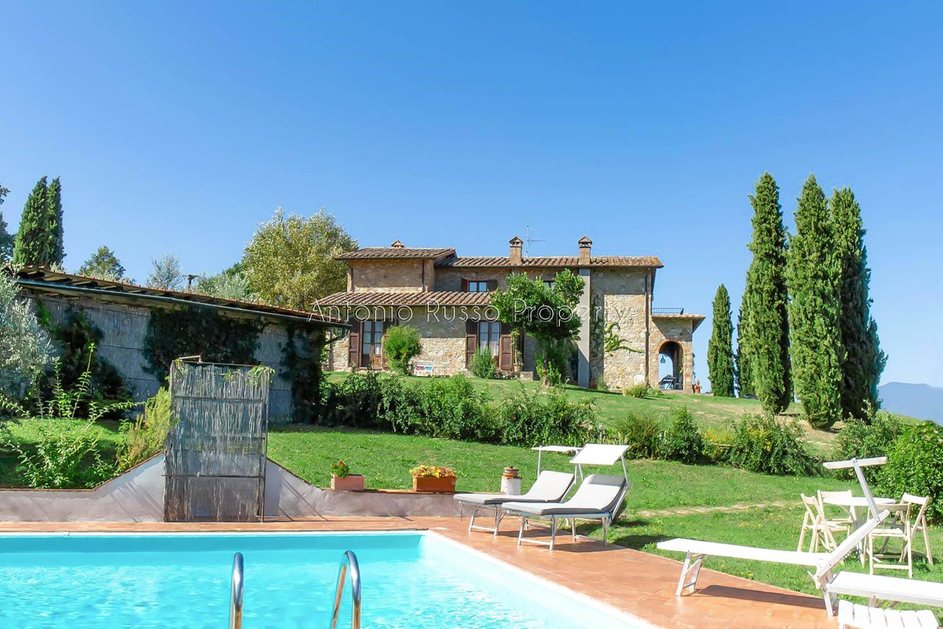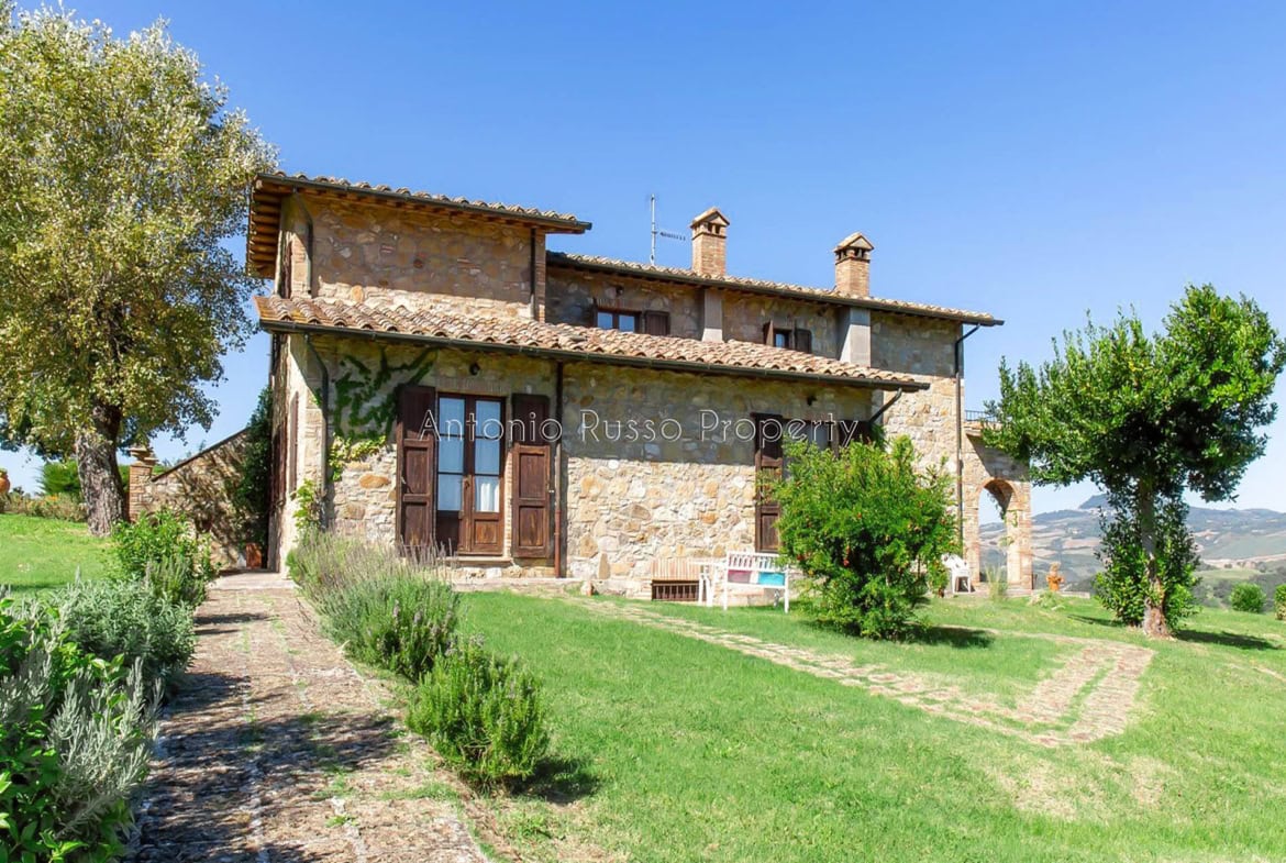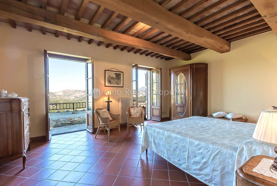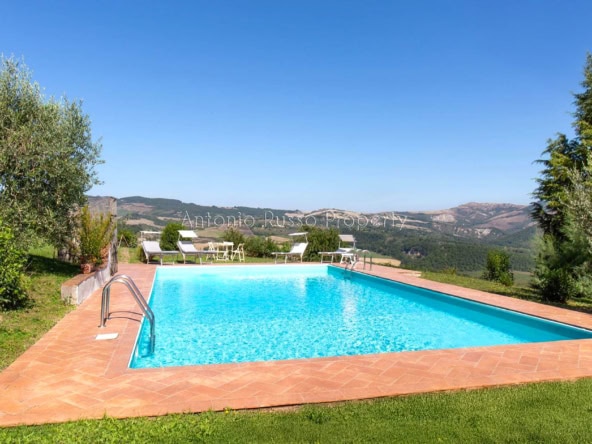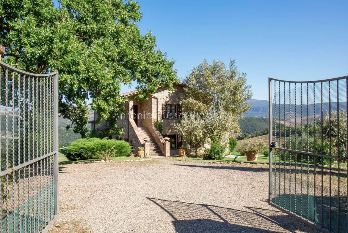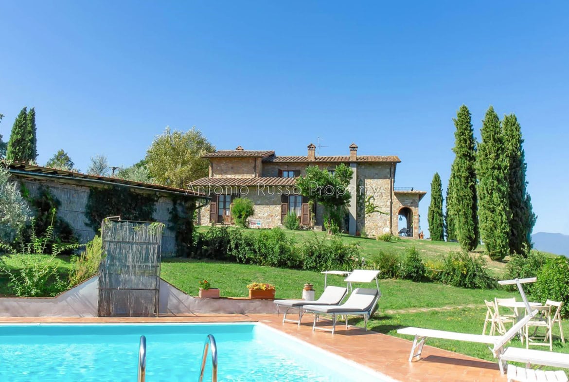 Stone farmhouse with swimming pool and 12 hectares of land with open views over the Tuscan countryside