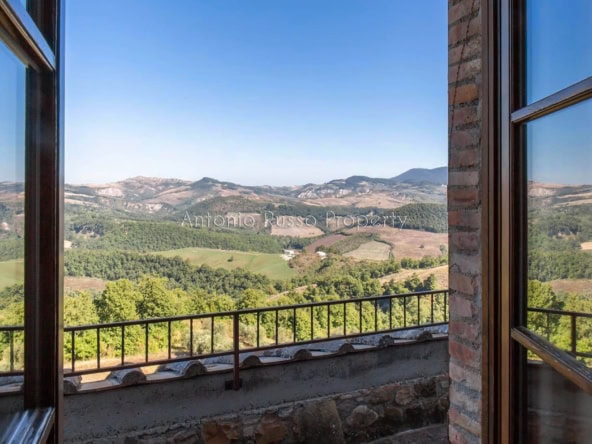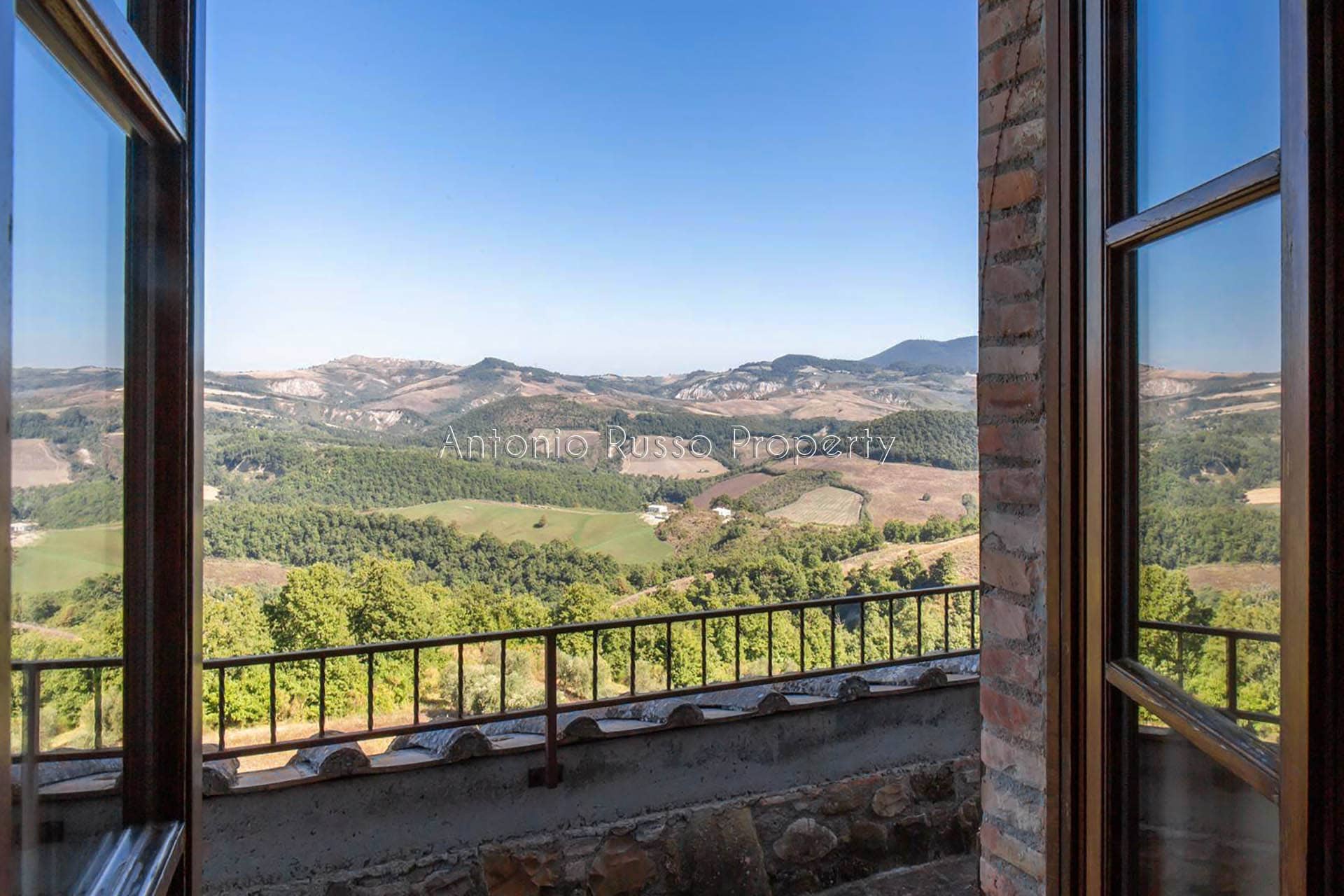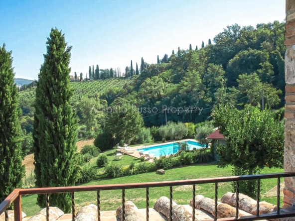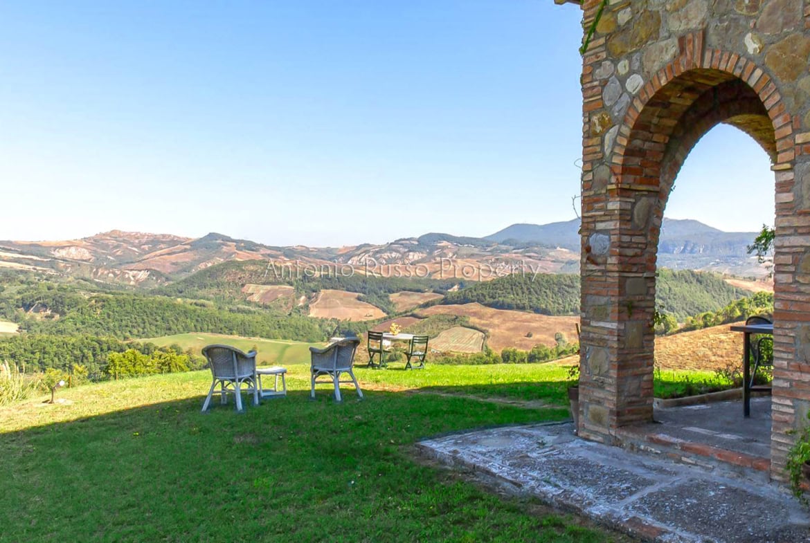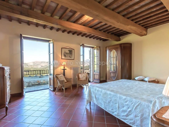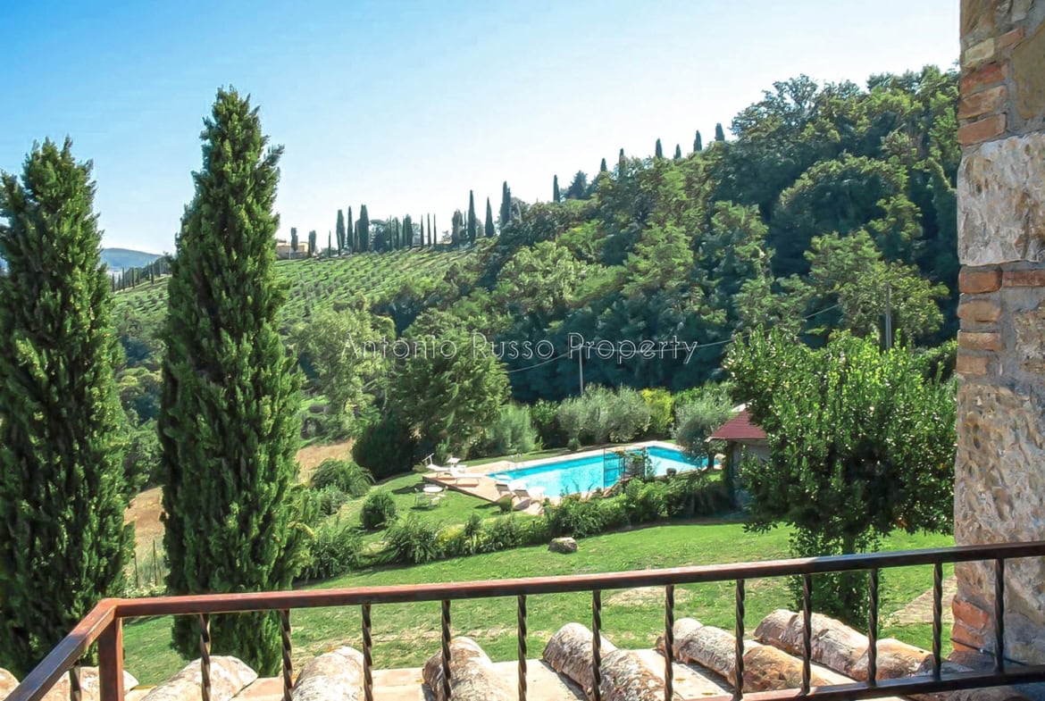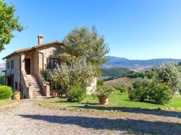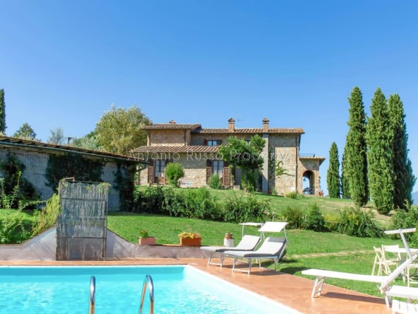 Stone farmhouse with swimming pool and 12 hectares of land with open views over the Tuscan countryside