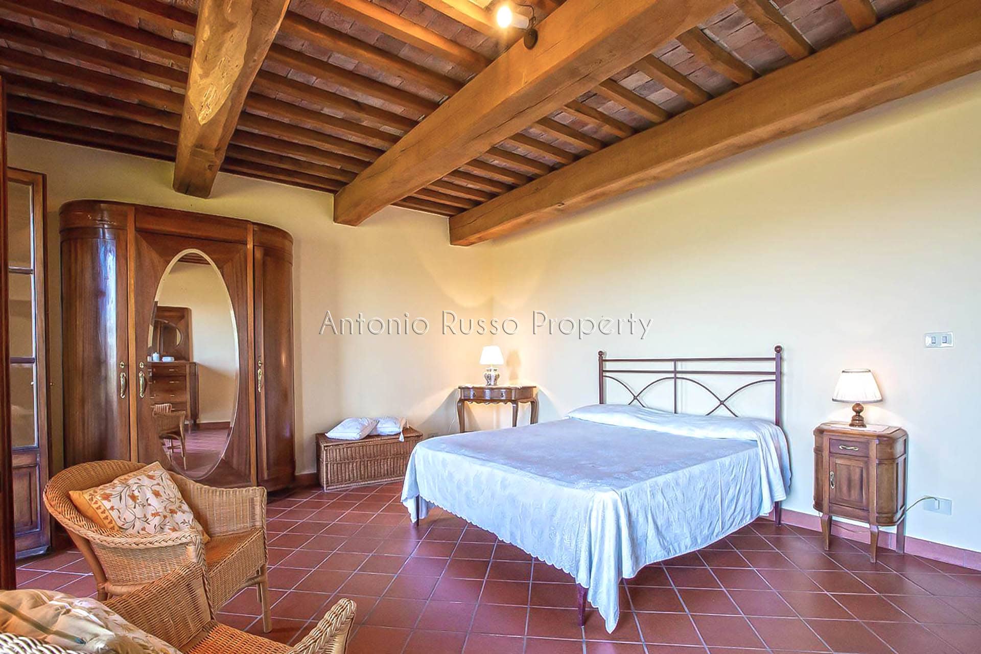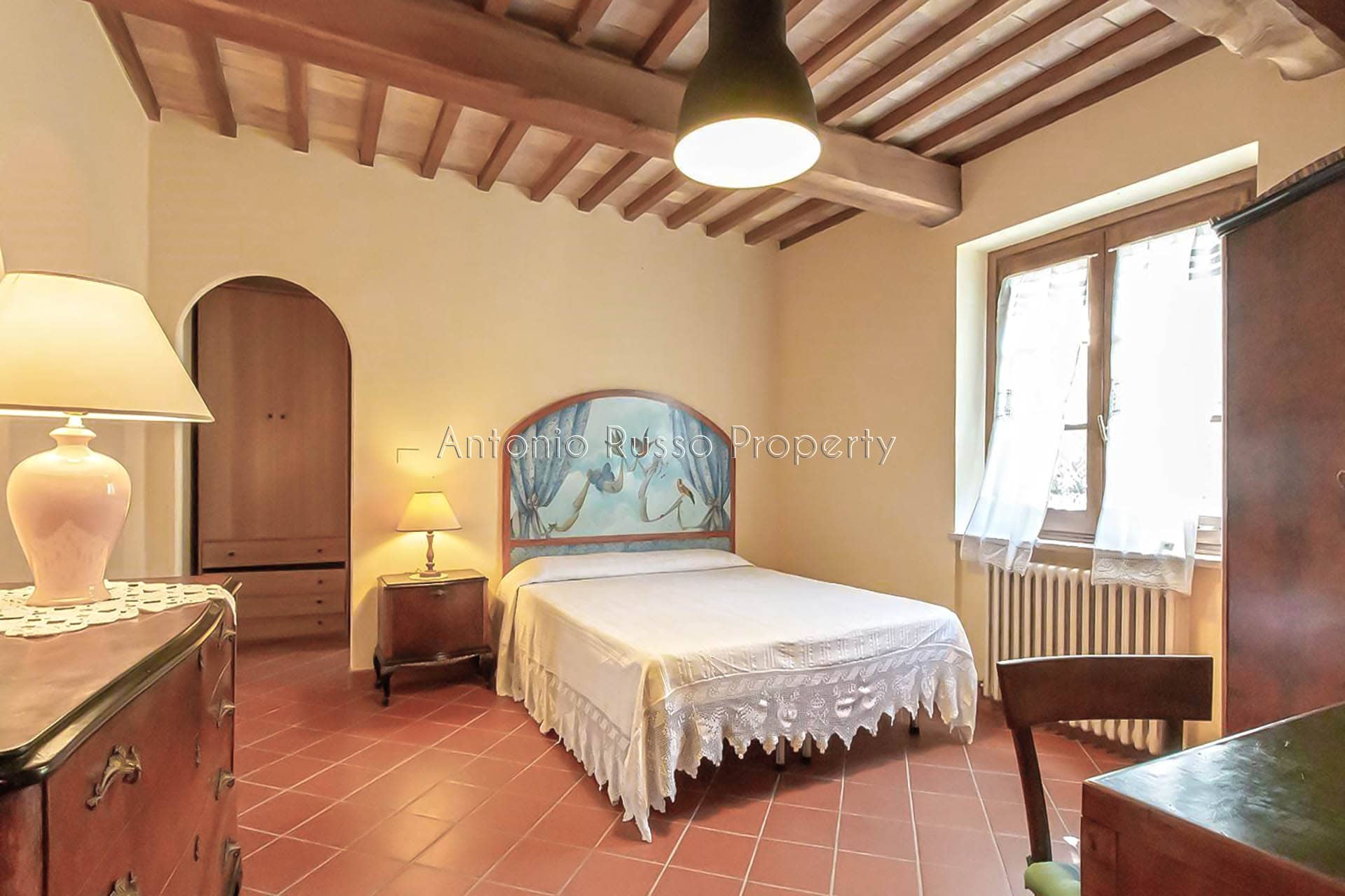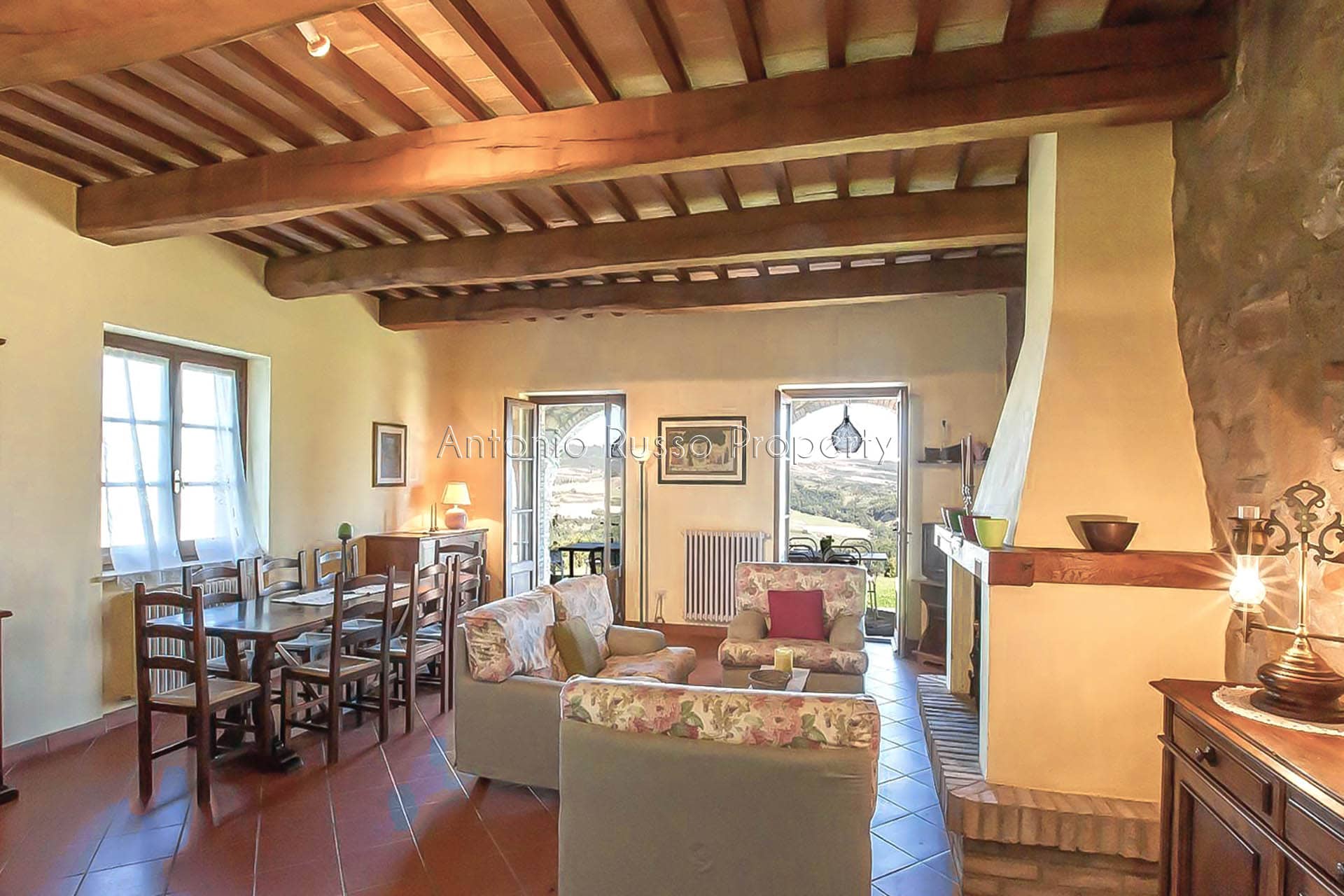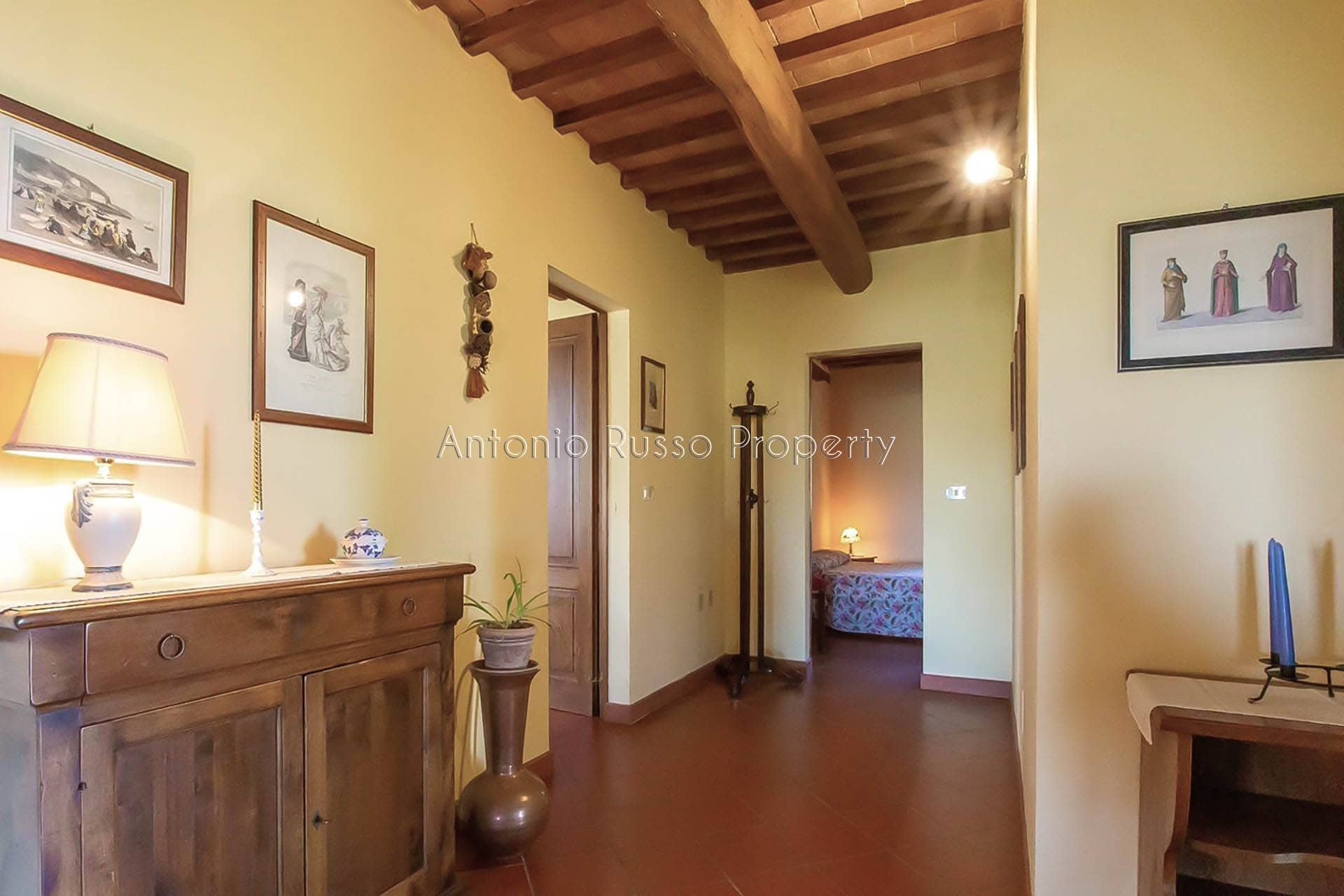 The atmosphere is authentic and warm. The heart of the house isthe spacious living room with an antique stone fireplace, flanked by a bright kitchen and access to a panoramic porch where you can relax and dine while enjoying the wonderful view. The sleeping area includes three bedrooms, each with an en suite bathroom, and a bedroom/study with a bathroom.