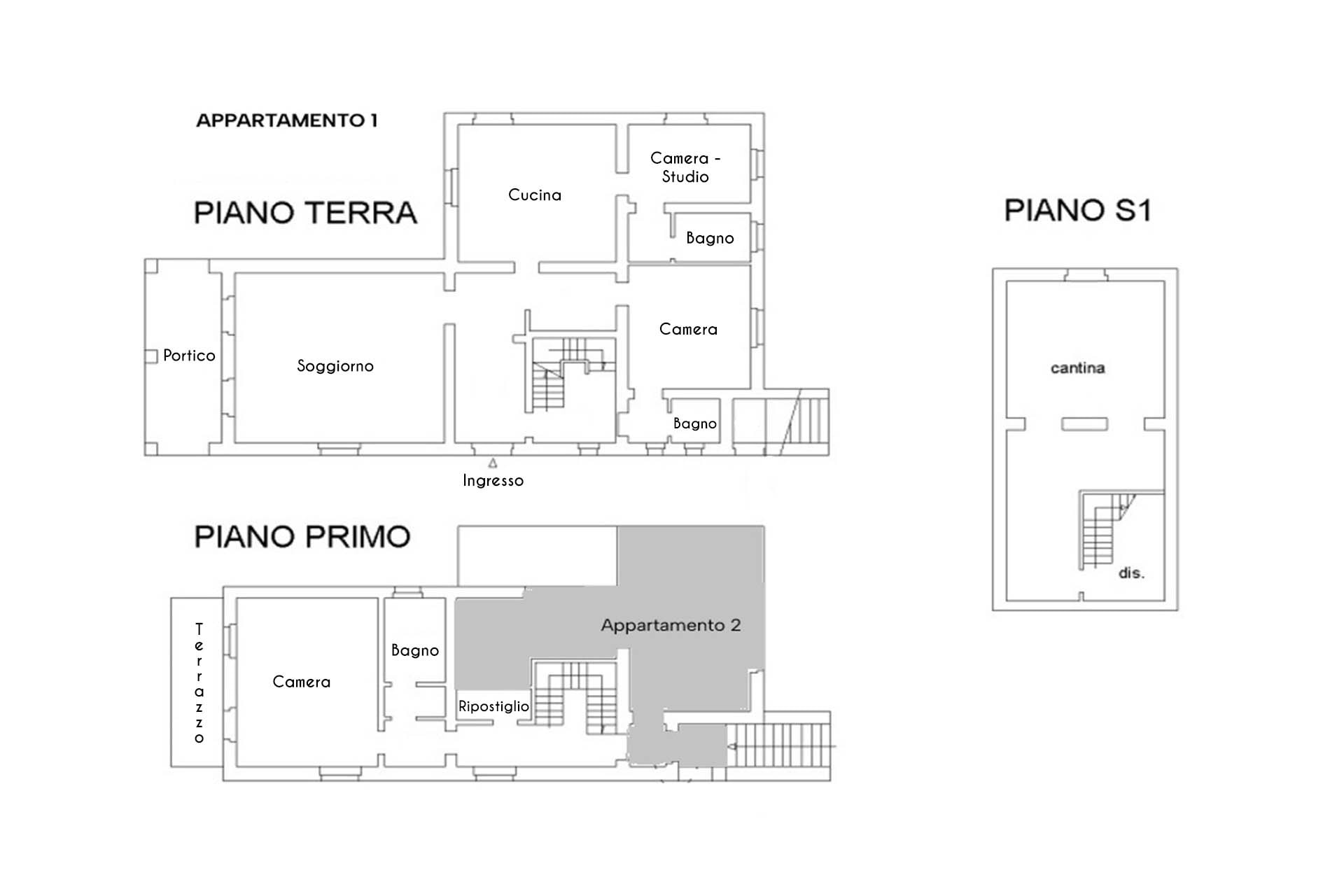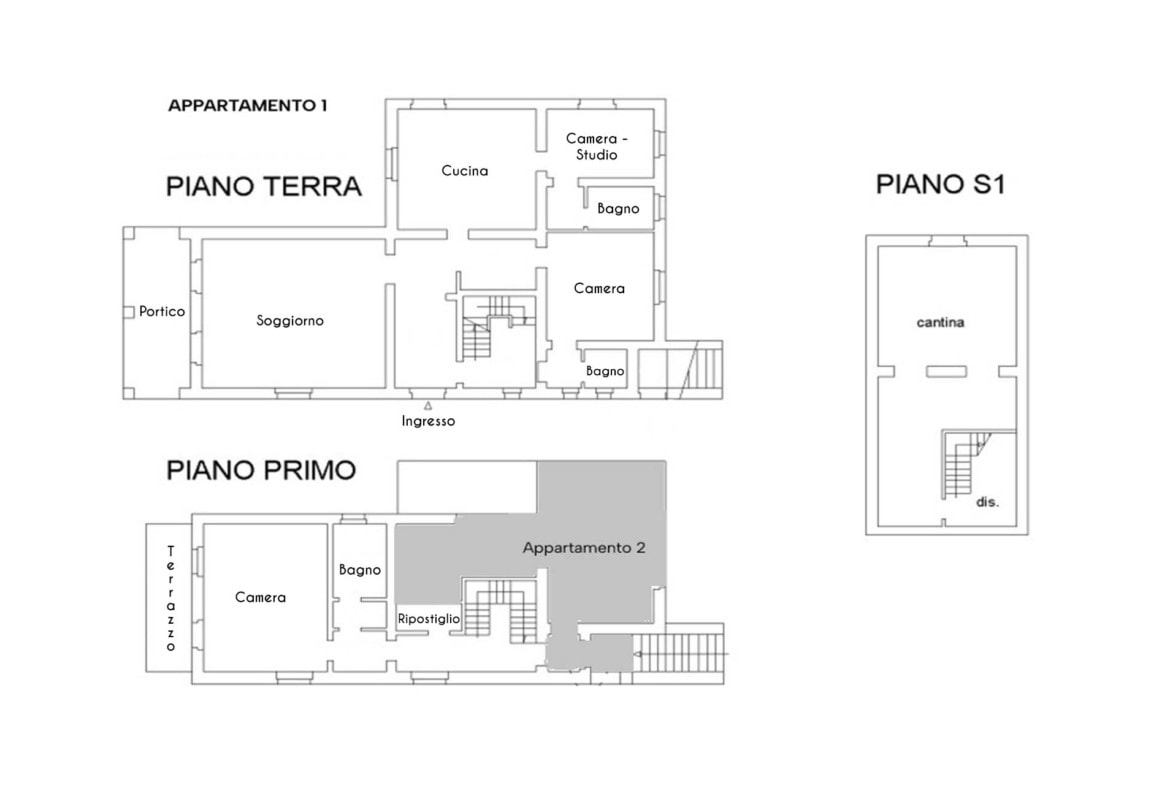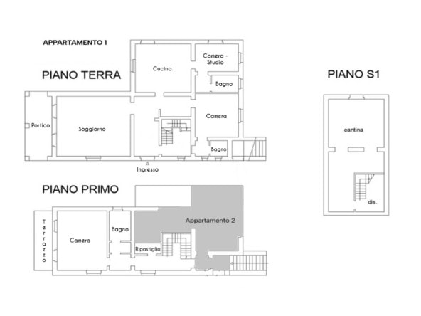 The first floor is also accessible via an external terracotta staircase and has a second kitchen: an ideal solution for guests and independent management.