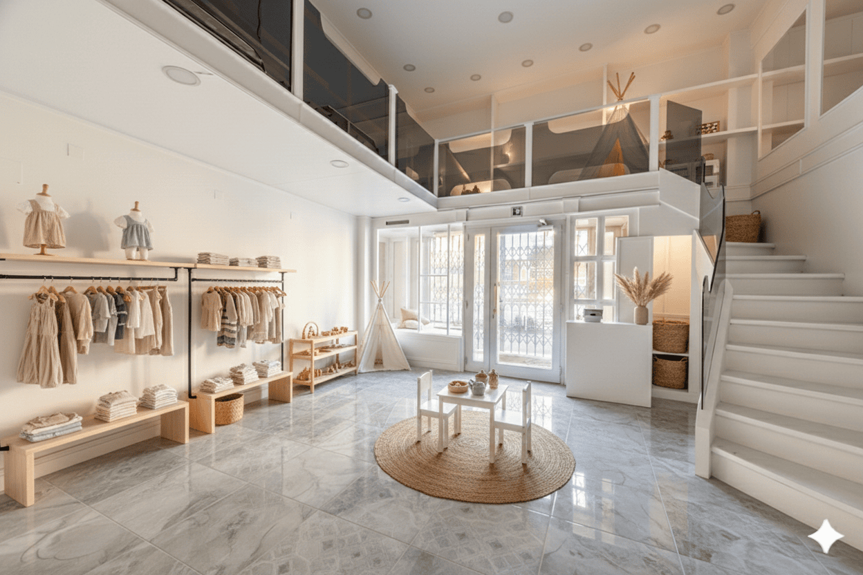 We have already developed several design concepts for this store, demonstrating how easily the space can be transformed. Whether your vision is a women’s or children’s clothing boutique, a high-end hair salon, a shoe store, or an exclusive gourmet food shop, this store already features newly installed electrical and plumbing systems, ready to support your business.
