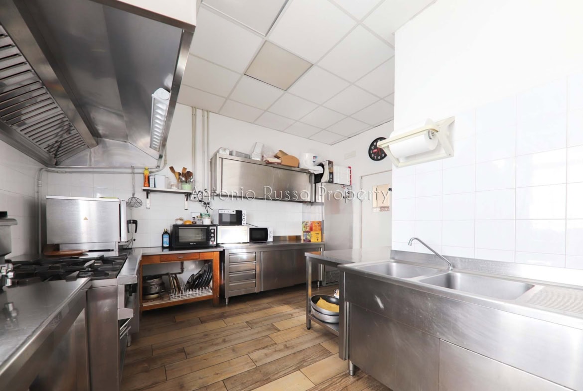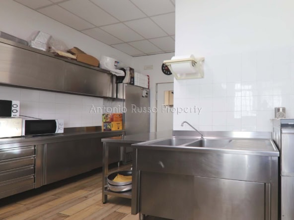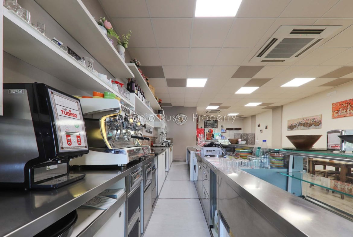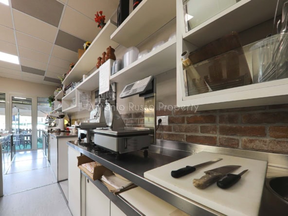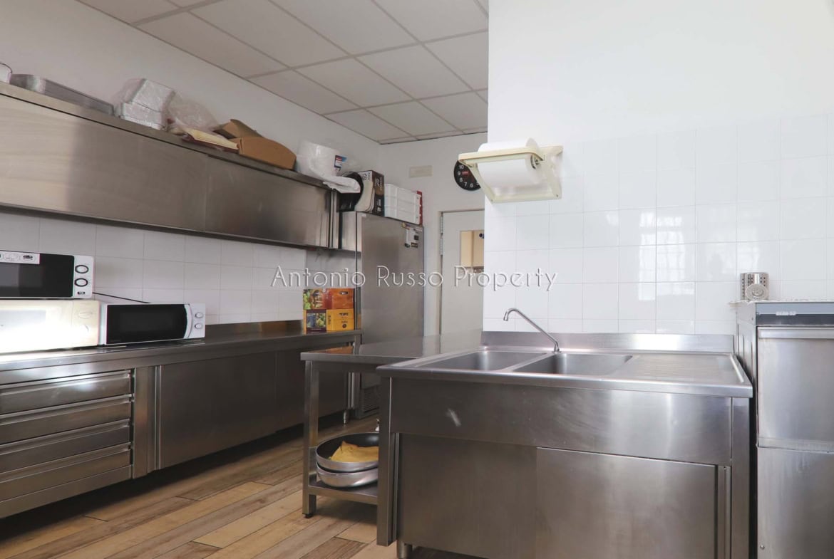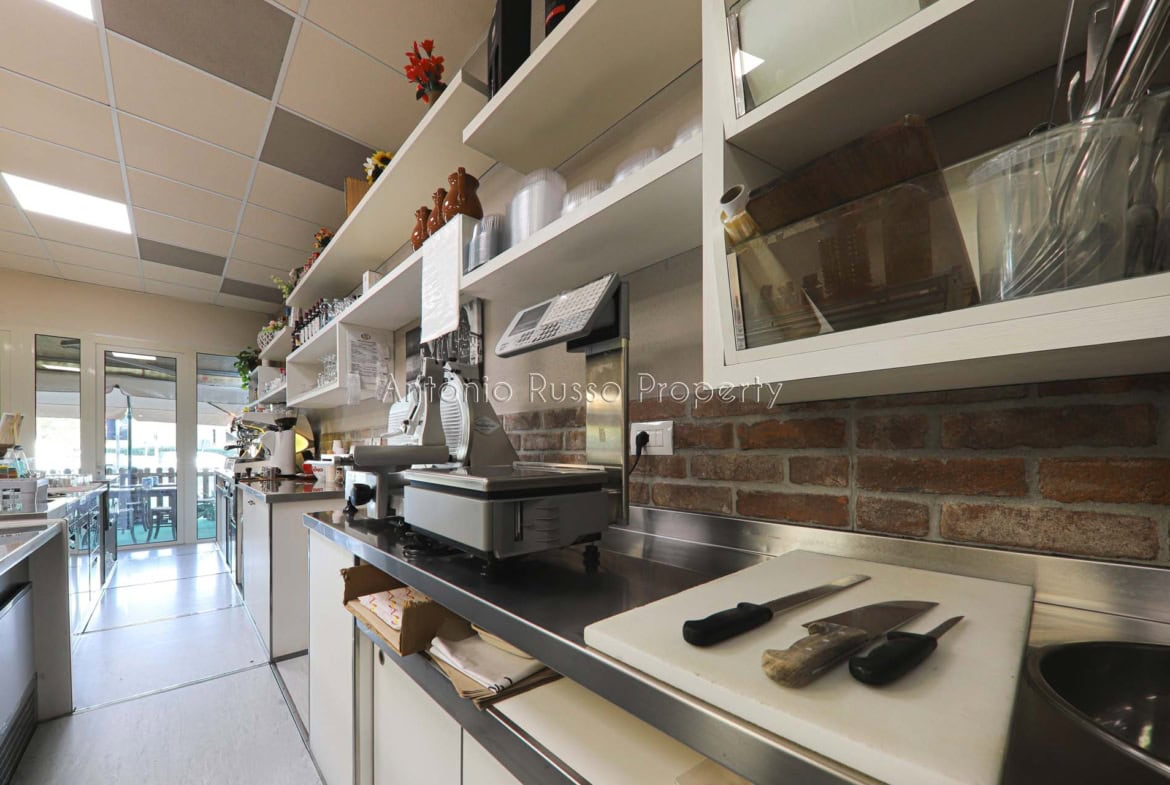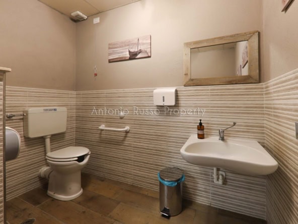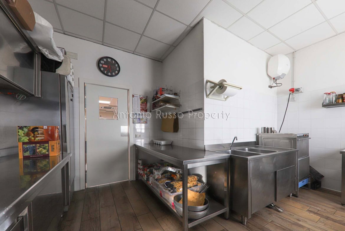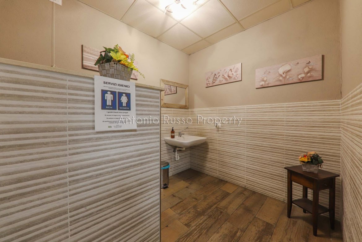 Ground floor (89 sq. m.): bar area with equipped counter, professional kitchen, employee dressing room and bathroom, public bathroom suitable for disabled people. Bright and well-organized spaces, ideal for cafeteria, aperitifs and lunches.