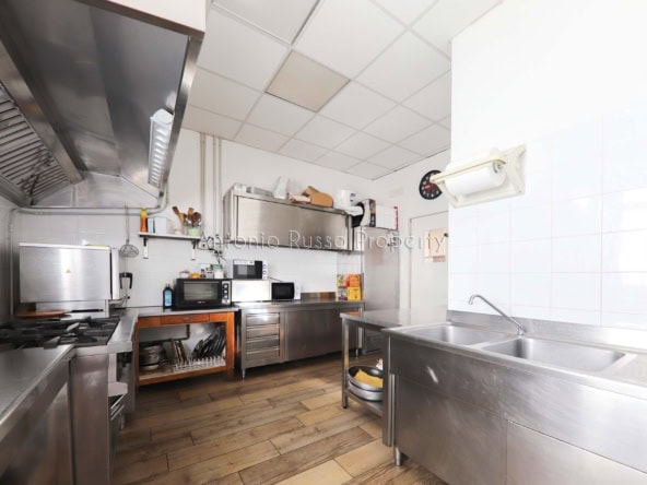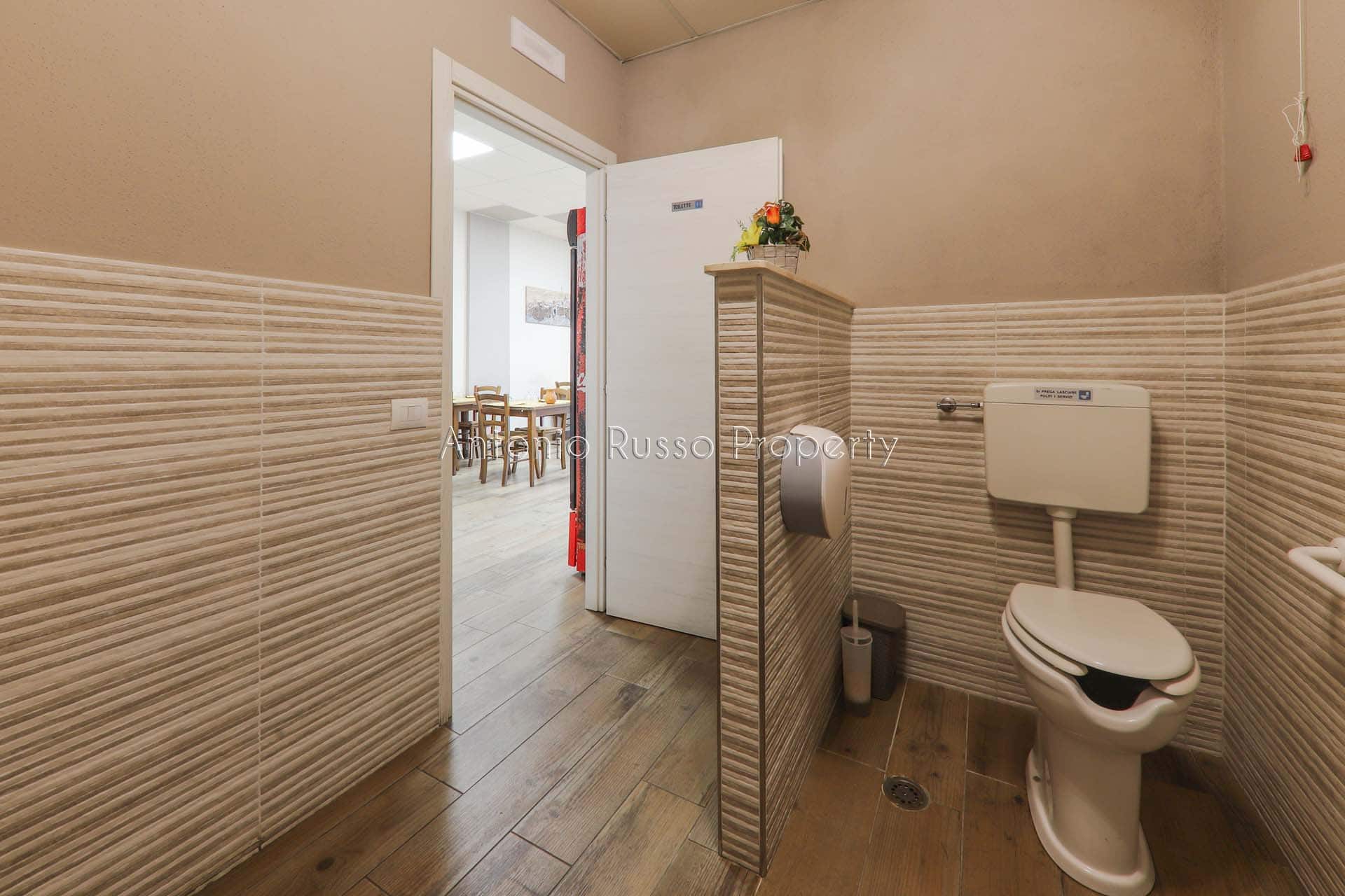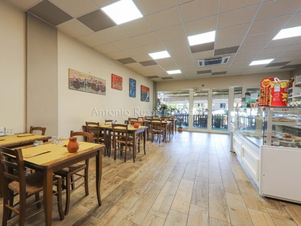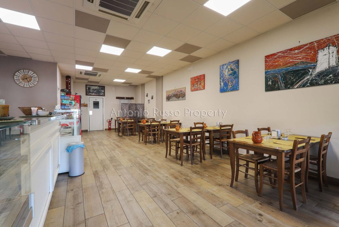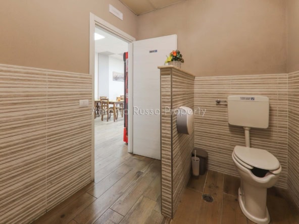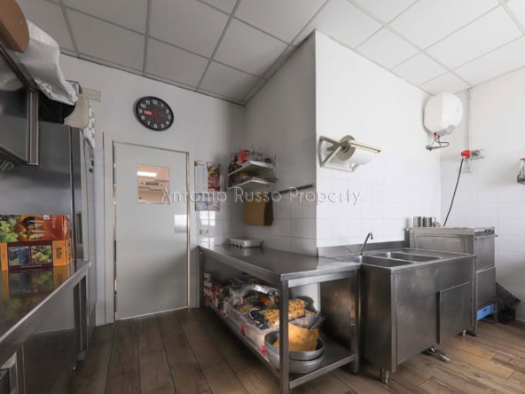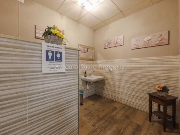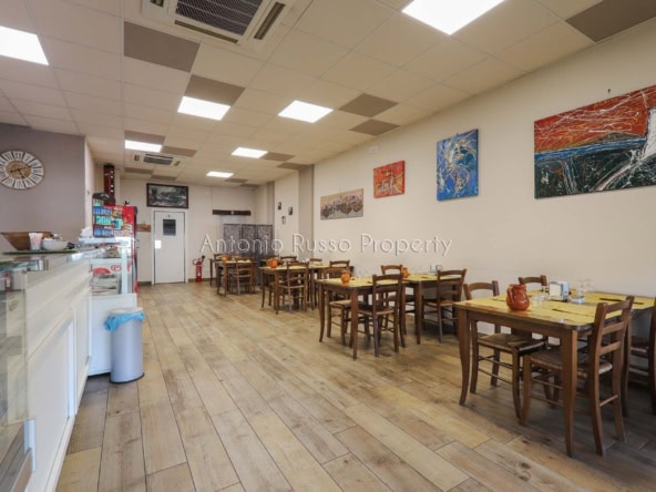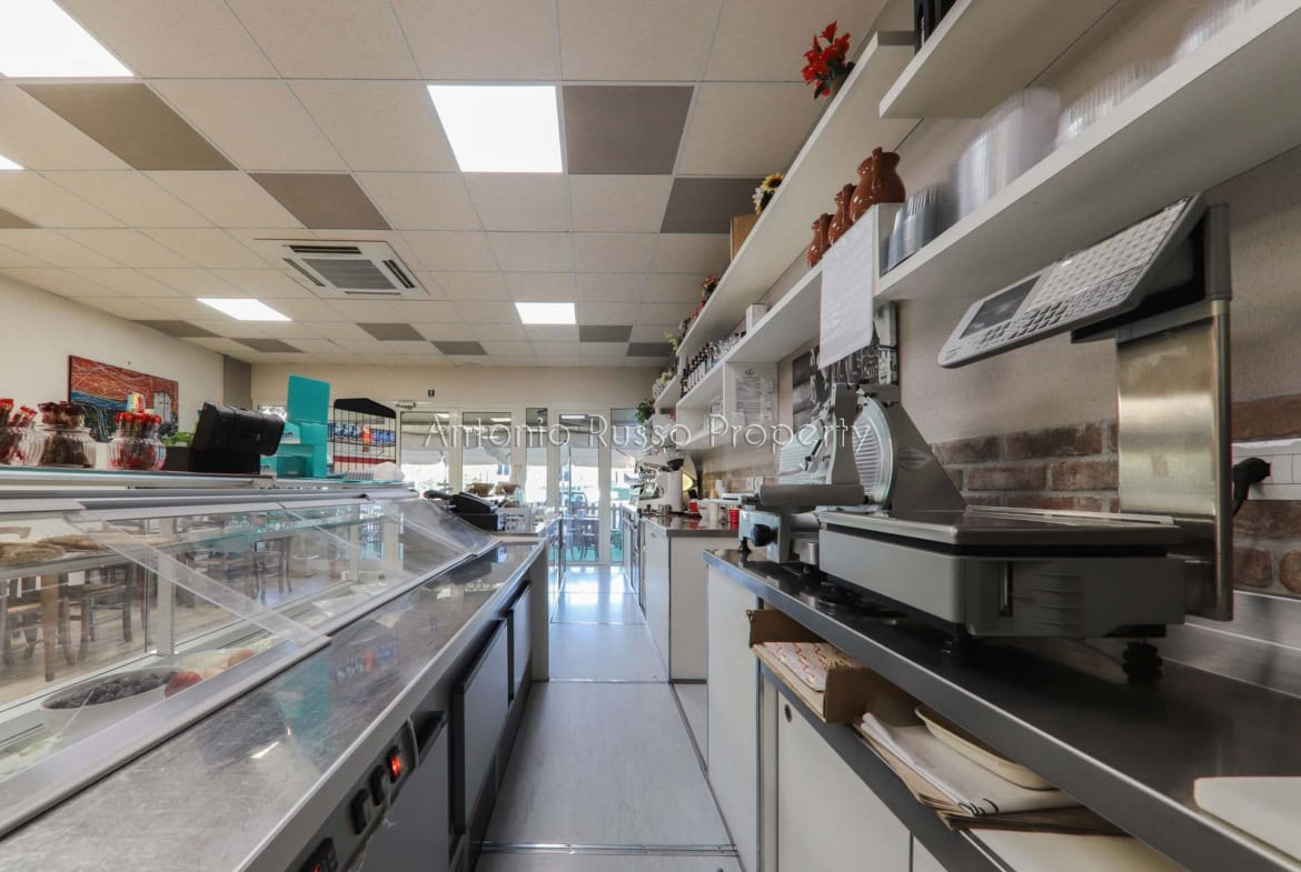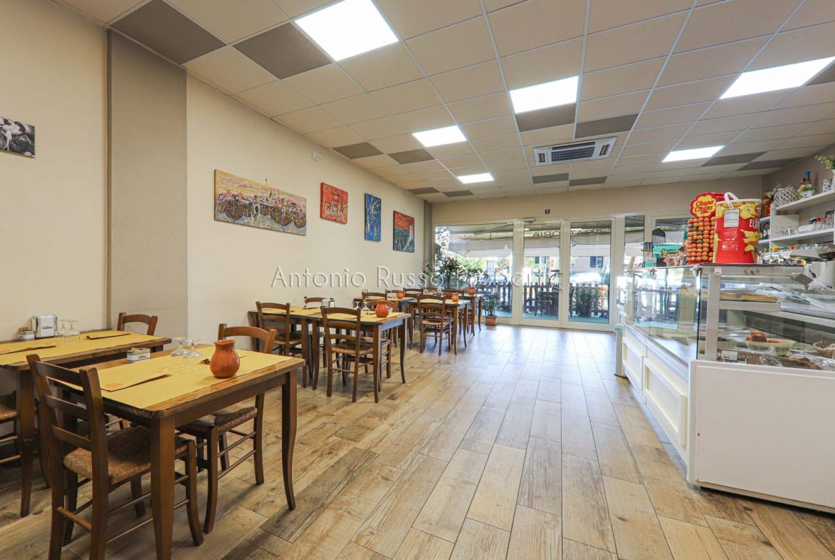 Ground floor (89 sq. m.): bar area with equipped counter, professional kitchen, employee dressing room and bathroom, public bathroom suitable for disabled people. Bright and well-organized spaces, ideal for cafeteria, aperitifs and lunches.