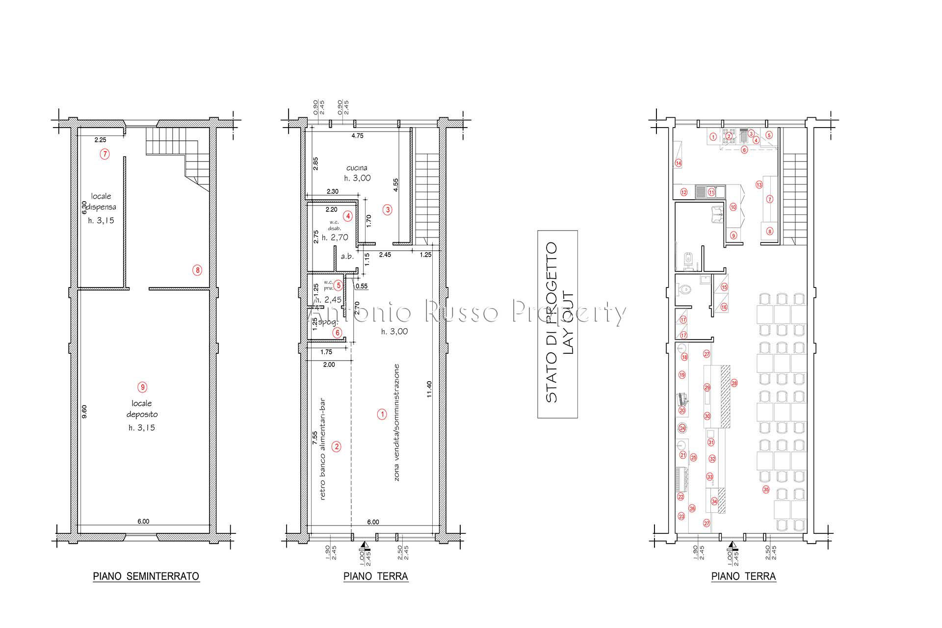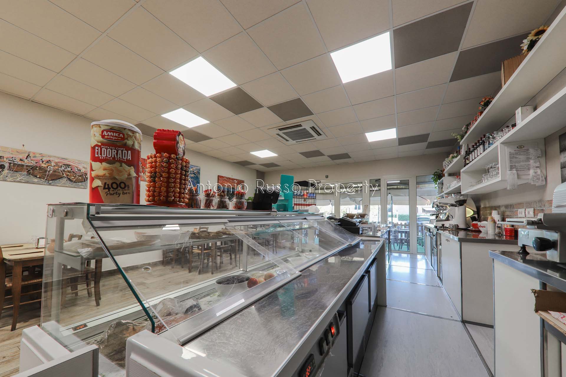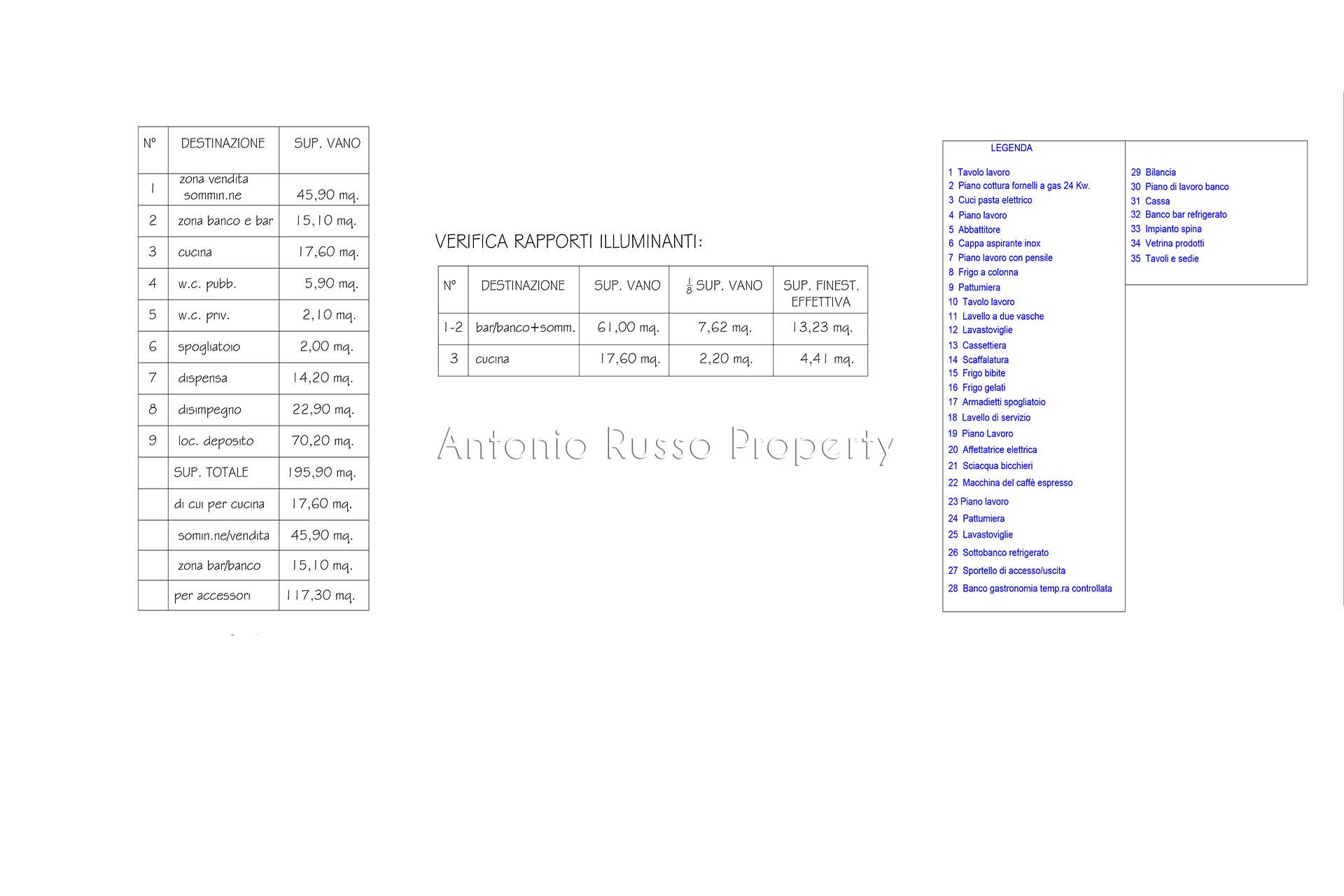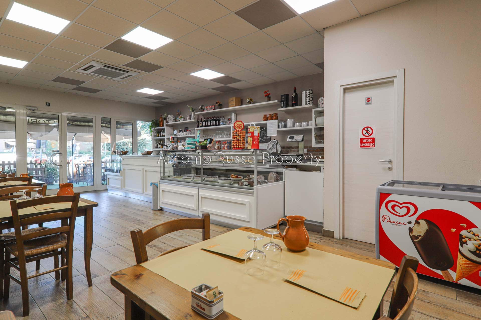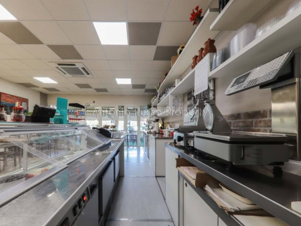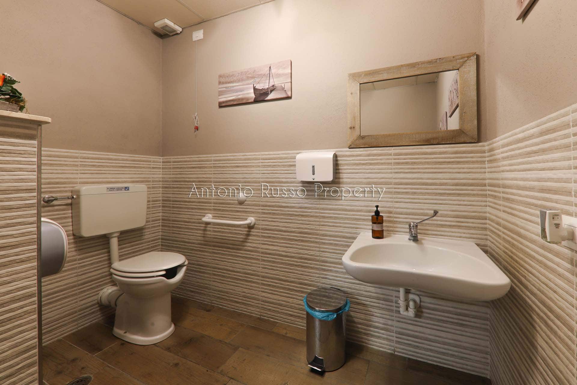 Ground floor (89 sq. m.): bar area with equipped counter, professional kitchen, employee dressing room and bathroom, public bathroom suitable for disabled people. Bright and well-organized spaces, ideal for cafeteria, aperitifs and lunches.