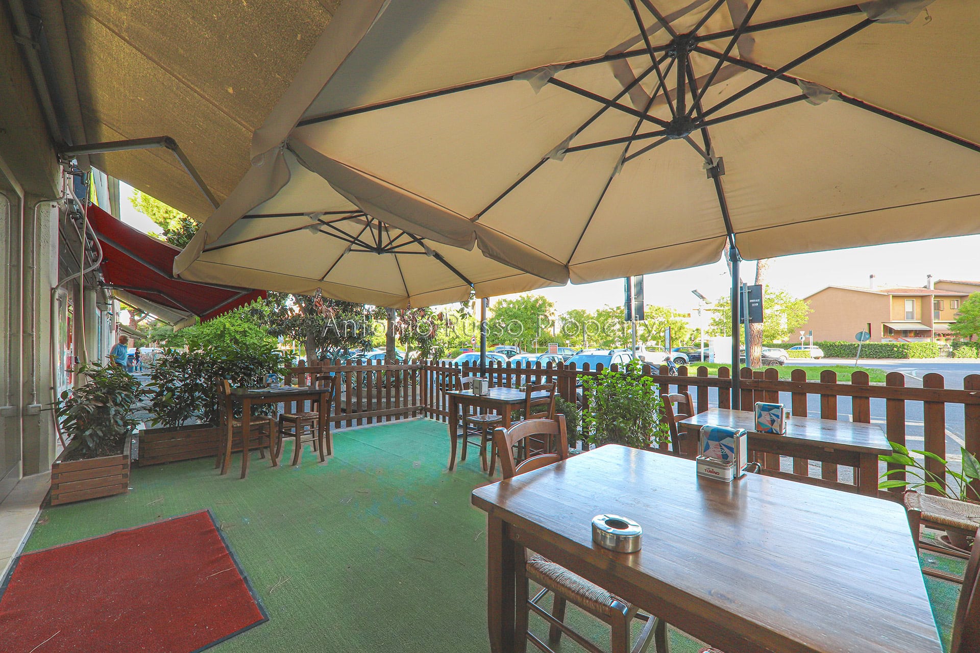 Outside there is a platform covered by awning and umbrellas, where tables and chairs are set up, creating a pleasant and welcoming space for the customers, who have been loyal for years.