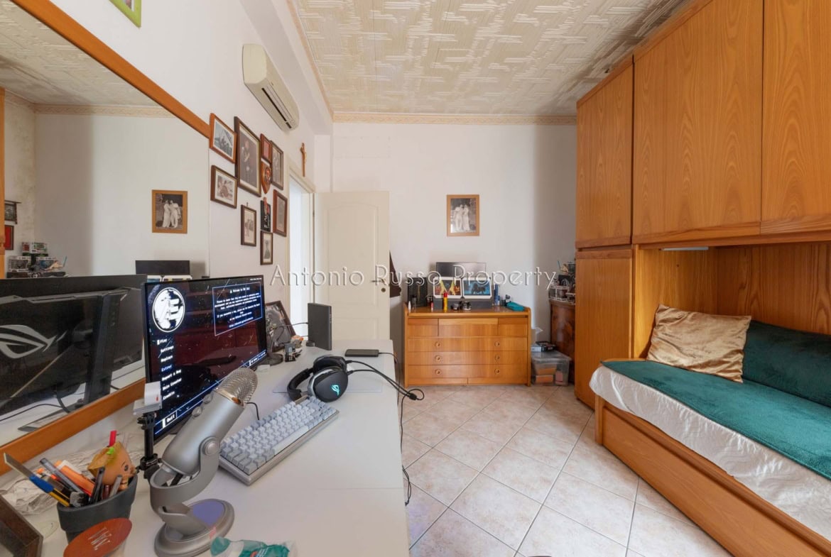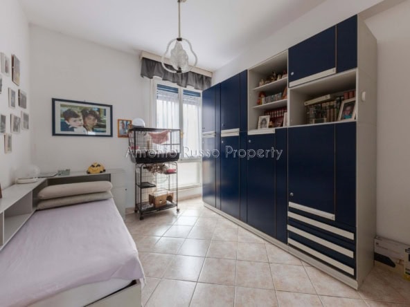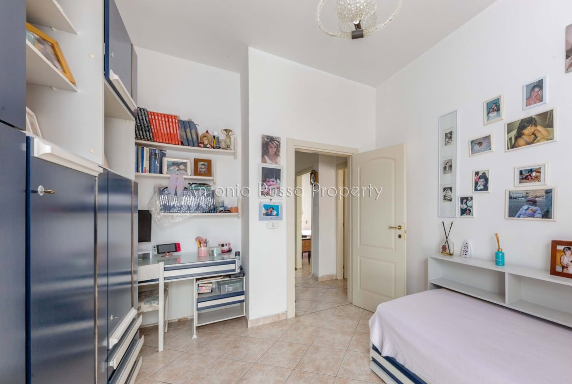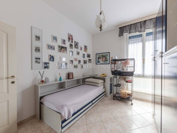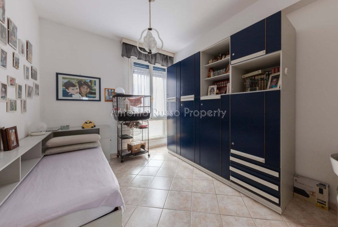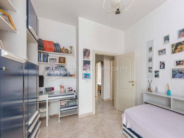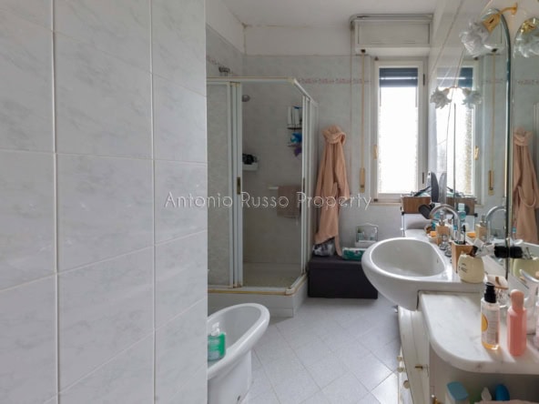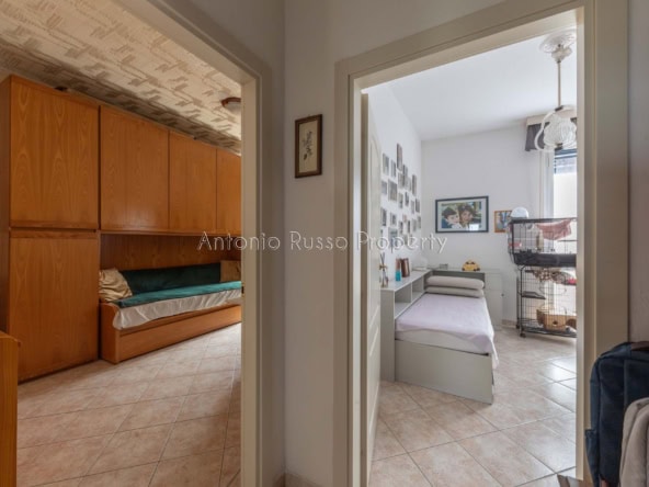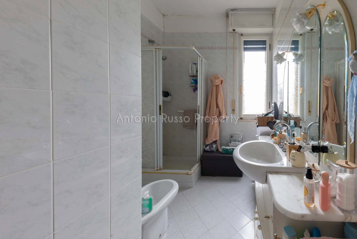 Il ripostiglio, adiacente al bagno, può essere trasformato in un secondo servizio, aumentando funzionalità e valore dell’immobile.
