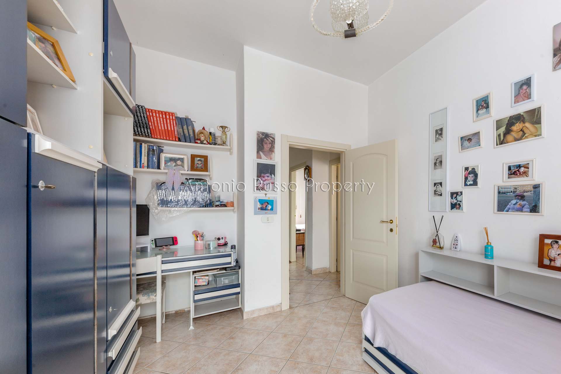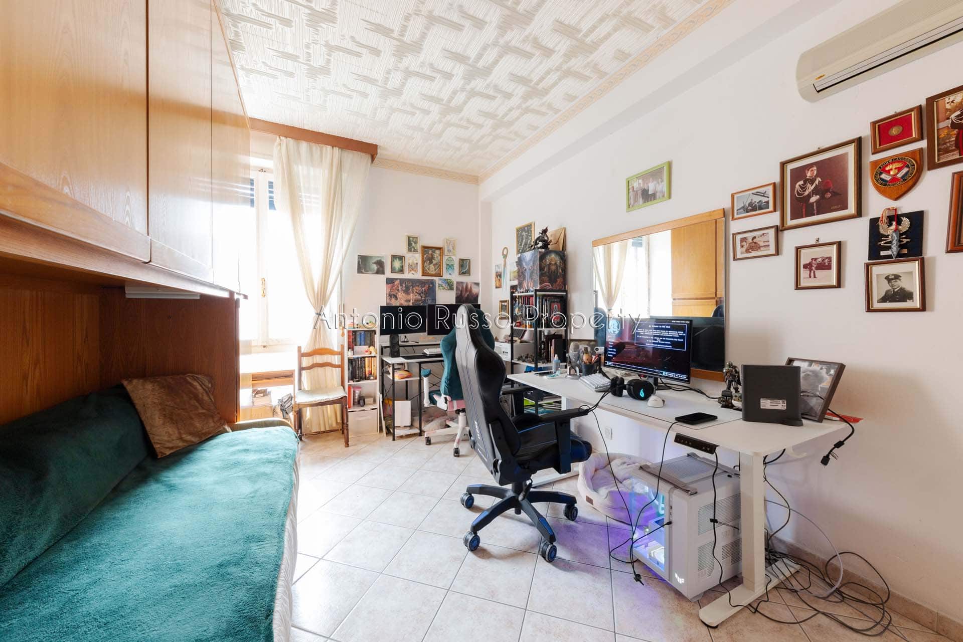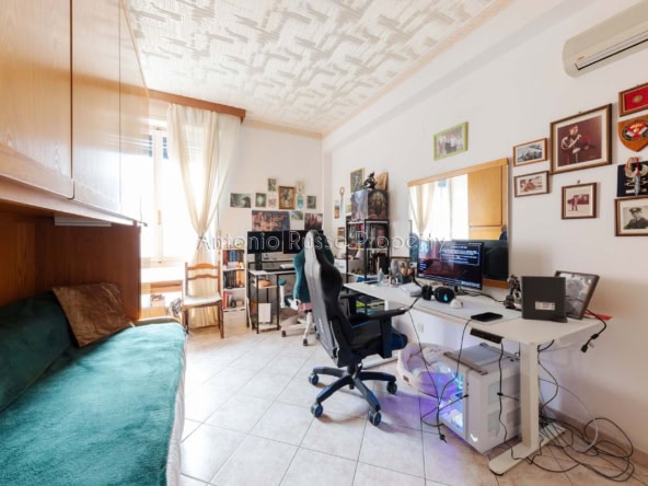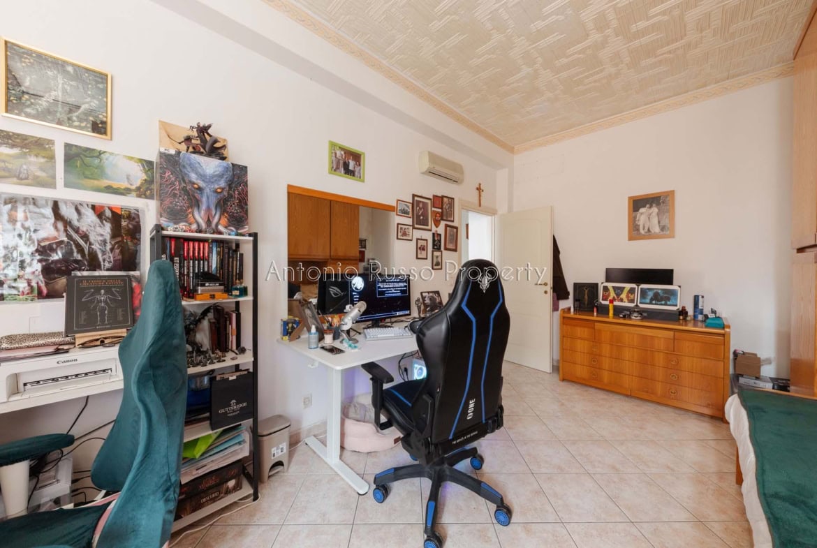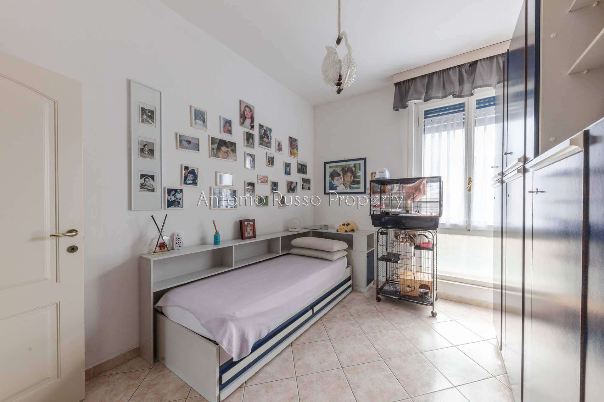 Il ripostiglio, adiacente al bagno, può essere trasformato in un secondo servizio, aumentando funzionalità e valore dell’immobile.