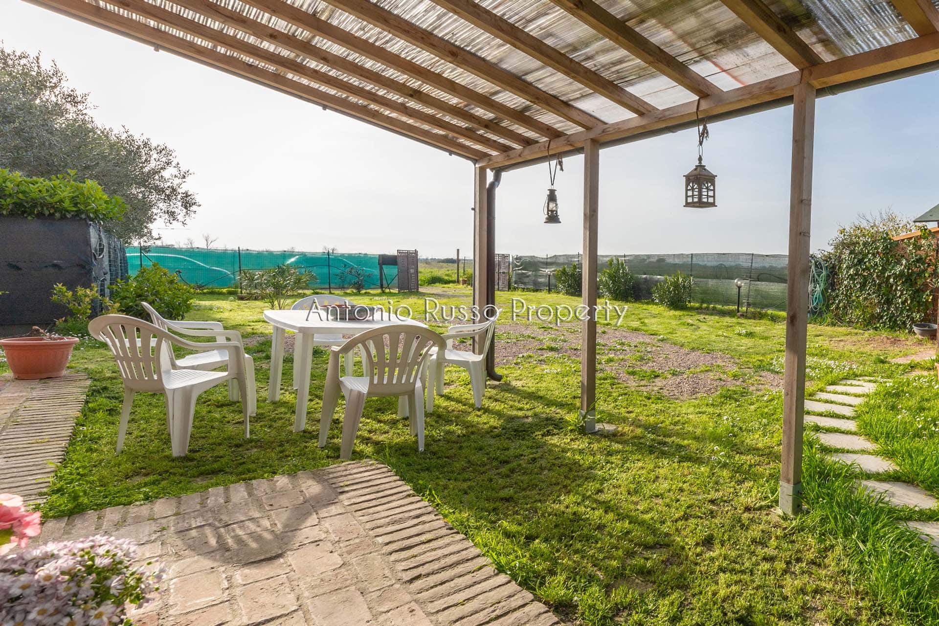 Uno spazio esterno difficile da trovare con queste dimensioni. Qui c’è posto per vivere davvero la casa anche fuori, un tavolo sotto la veranda, una serata con gli amici, il cane libero in giardino o semplicemente un po’ di silenzio.