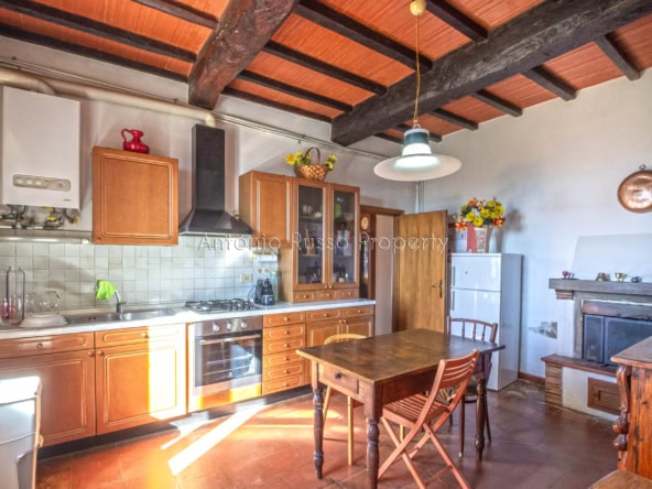 Al piano terra troviamo una cantina di circa 30 mq con soffitto a voltine in mattoni (elemento ricorrente nel casale) e un locale con caldaia a pellet.