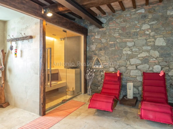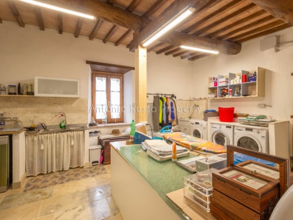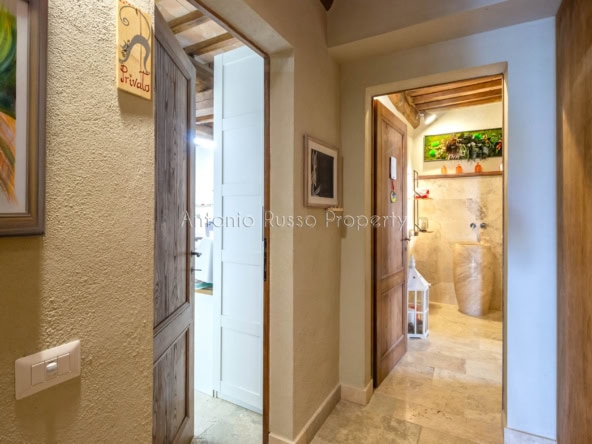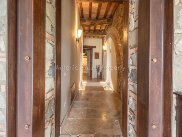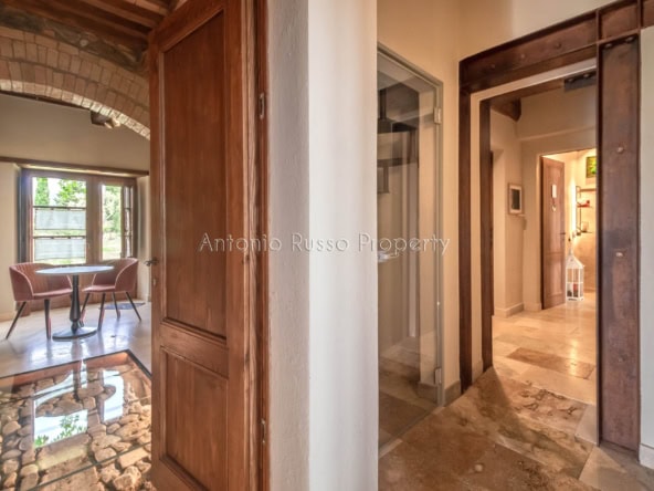 Il casale si sviluppa su due livelli principali più un piano interrato. Al piano terra si trovano tre camere da letto, due ricavate dalle antiche stalle, tutte con bagno en suite, oltre a una sauna privata, un salone con zona relax e pranzo, e un locale lavanderia.