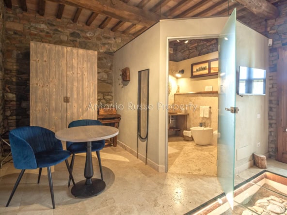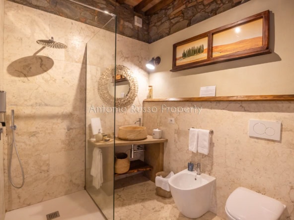 - Autentici materiali toscani: basalto, travertino, travi in castagno