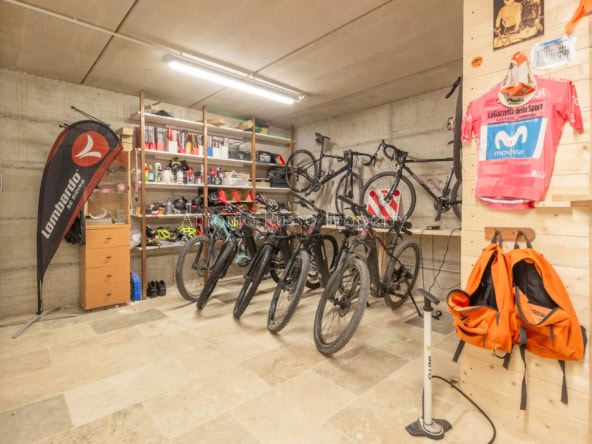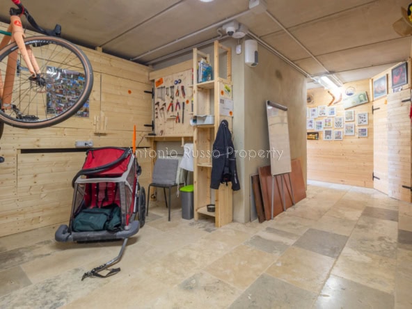 Il piano interrato ospita un garage di circa 120 mq con servizio.